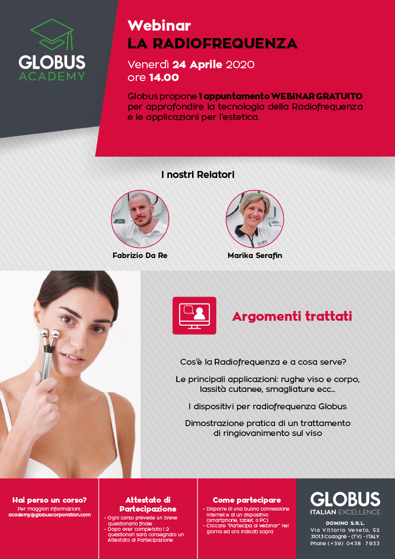 Webinar Academy Course: LA RADIOFREQUENZA2021-07-27T15:13:40+02:00 Descrizione Progetto REGISTRATI gratuitamente ed effettua il LOGIN per guardare questo video corso. REGISTRATI LOGIN (24-04-2020) Video del Webinar: La Radiofrequenza: che cos’è e a che cosa serve PDF
